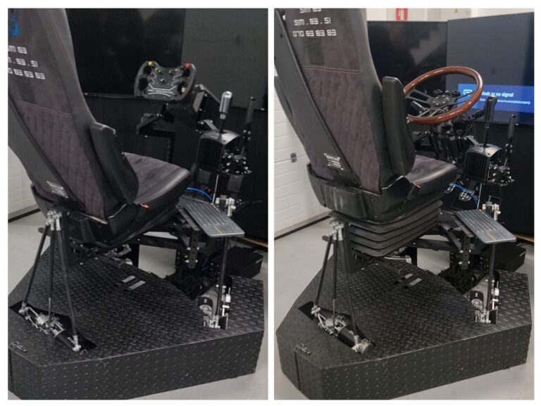 Odkrijte vrhunsko vsestranskost SIM83-MS06. Oglejte si, kako ta simulator gibanja v le 10 minutah preobrazimo iz GT dirkalnika v težki tovornjak.